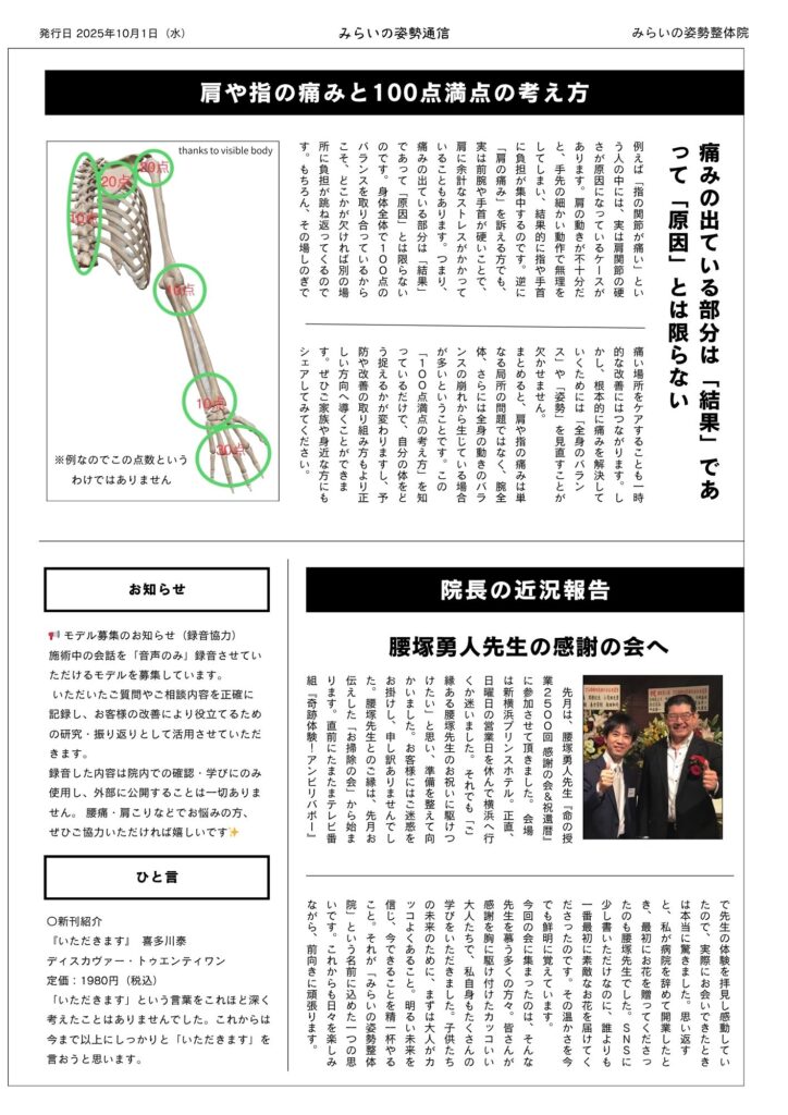 さて、今月も『みらいの姿勢通信』10月号を発行いたしました。