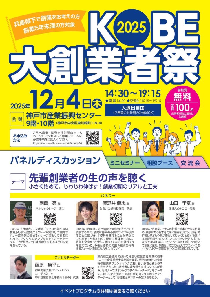 兵庫県や神戸市など行政の後援のもと開催される創業イベントです。