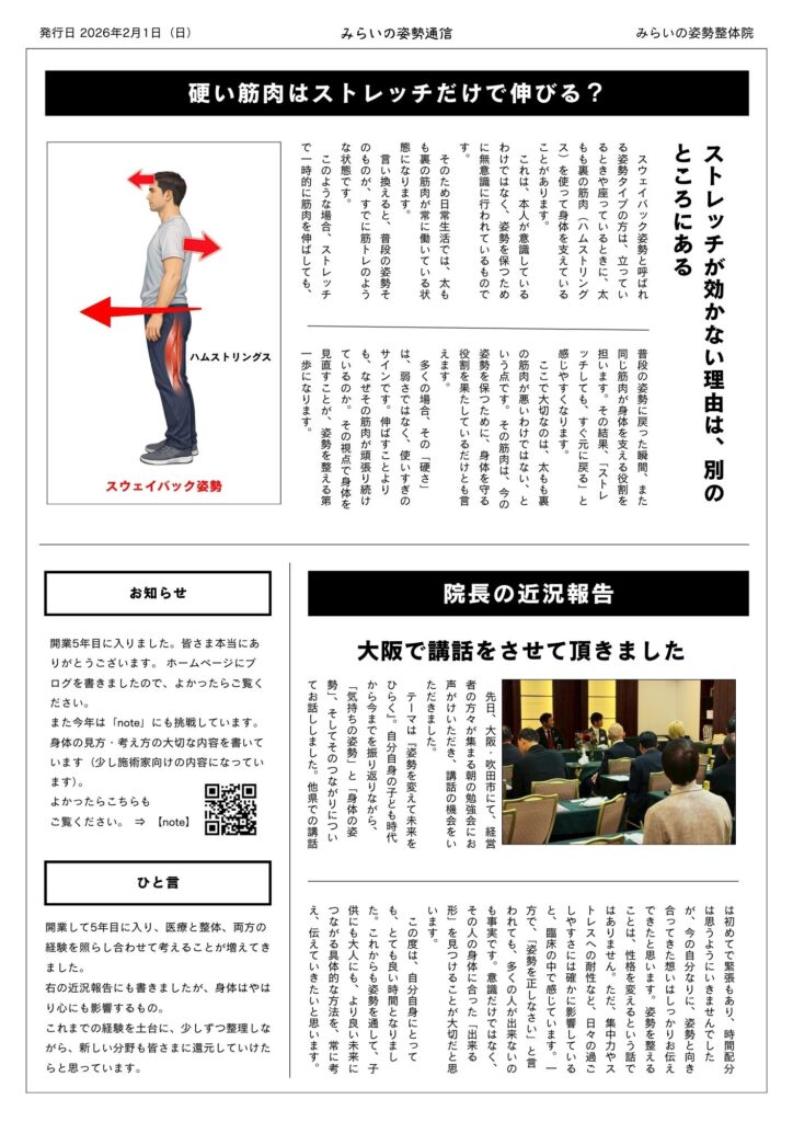 さて、今月も『みらいの姿勢通信』2月号を発行いたしました。